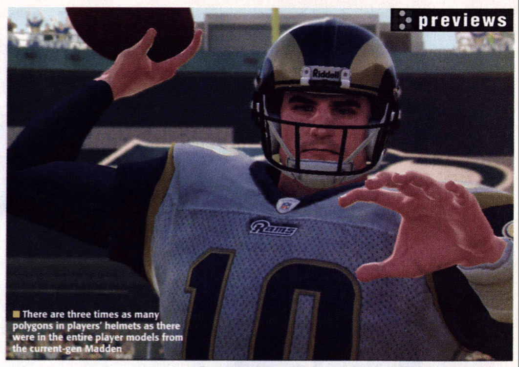 Looking back at a lot of the reviews and magazine clippings from the time, I honestly think Madden 06 got off pretty easy. For as dumb as Marc Bulger might look in those bulky pads, a lot of people seemed to be able to stomach everything that was lost in the transition from PS2 to Xbox 360 because the game was prettier now. High-definition graphics were damn cool and an easy thing to sell.