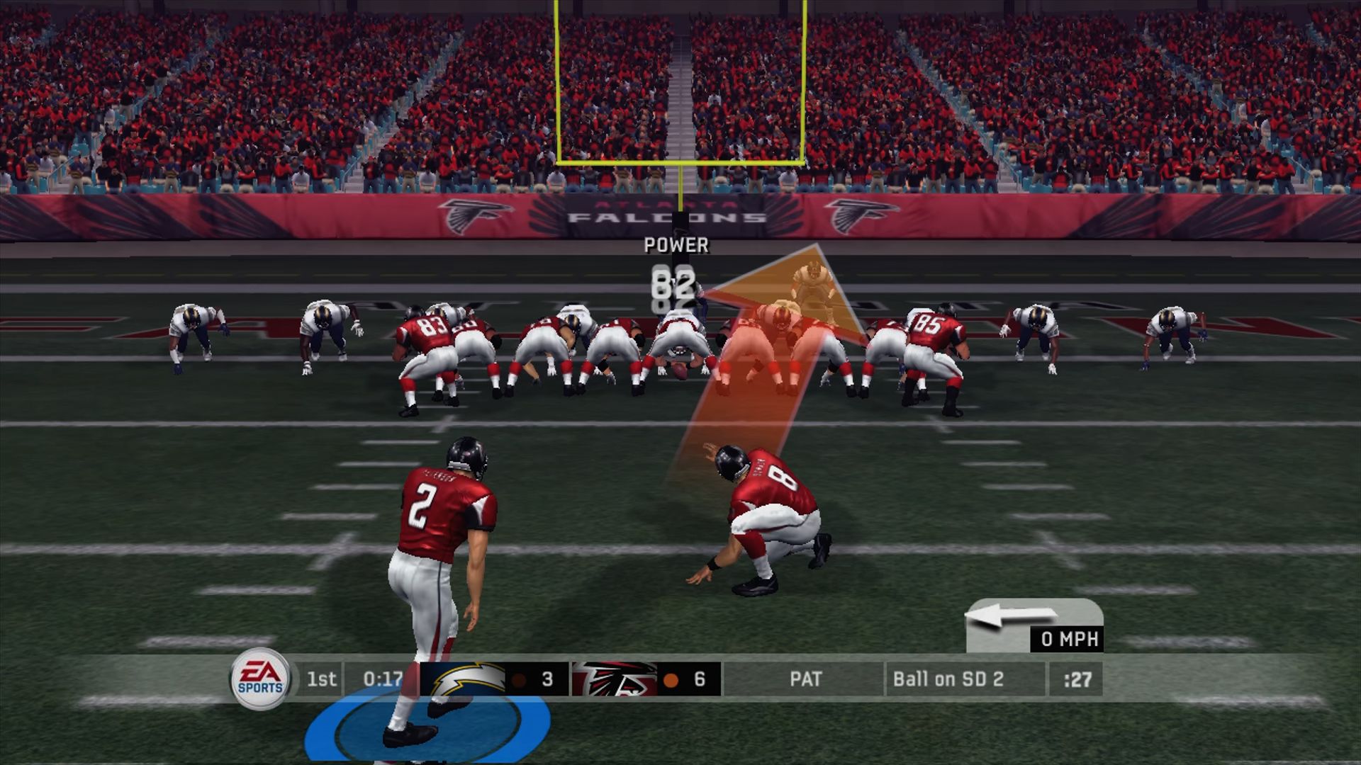 And, yes, appreciate the crappiness of the field goal meter — a meter that is quite good on the PS2 version as they just use a version of the Tiger Woods meter more or less in that game.